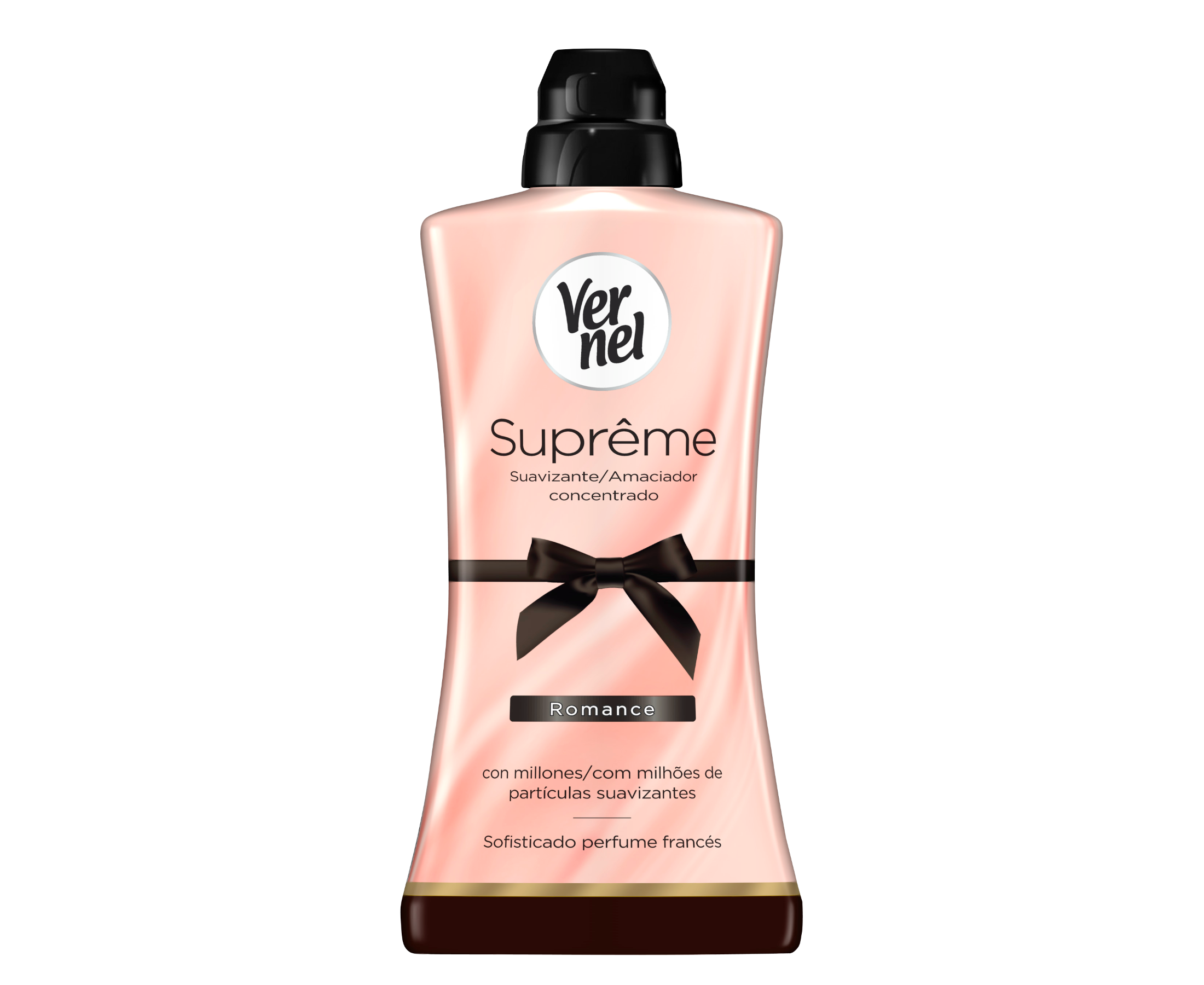 Vernel Suprême é um amaciador concentrado que proporciona um cuidado irresistível à sua roupa, graças à sua fórmula com milhões de partículas suavizantes. O seu sofisticado perfume - criado por perfumistas franceses - garante uma fragrância sedutora e duradoura na sua roupa.