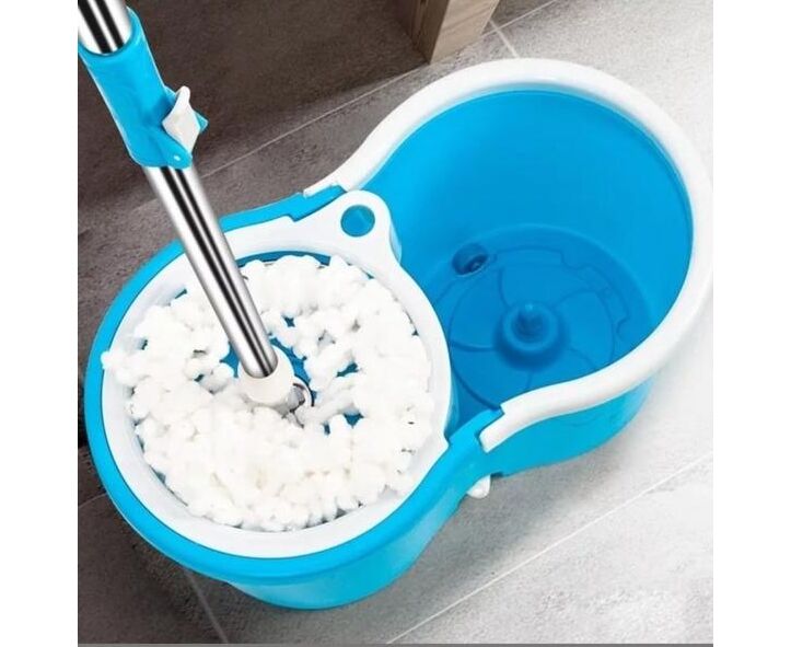 Este conjunto de balde e esfregona tira proveito de dois diferentes sistemas automáticos de rotação: um para limpar a esfregona, quando esta é mergulhada na água; enquanto o outro serve para torcer a esfregona na perfeição, por forma a deixá-la completamente seca após a sua limpeza.