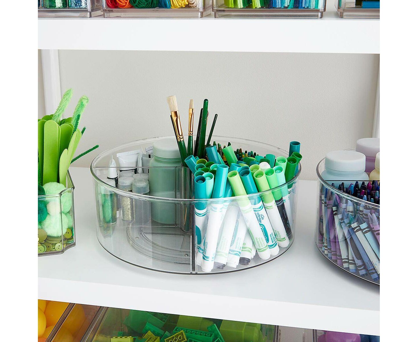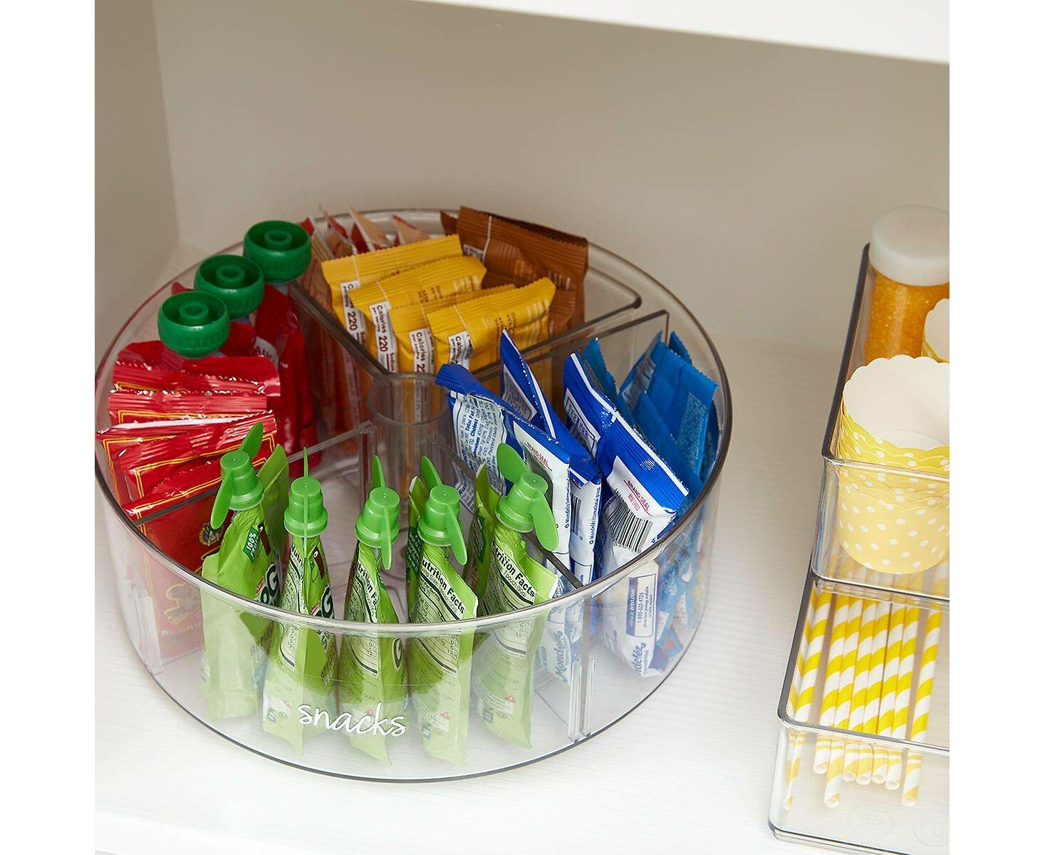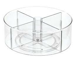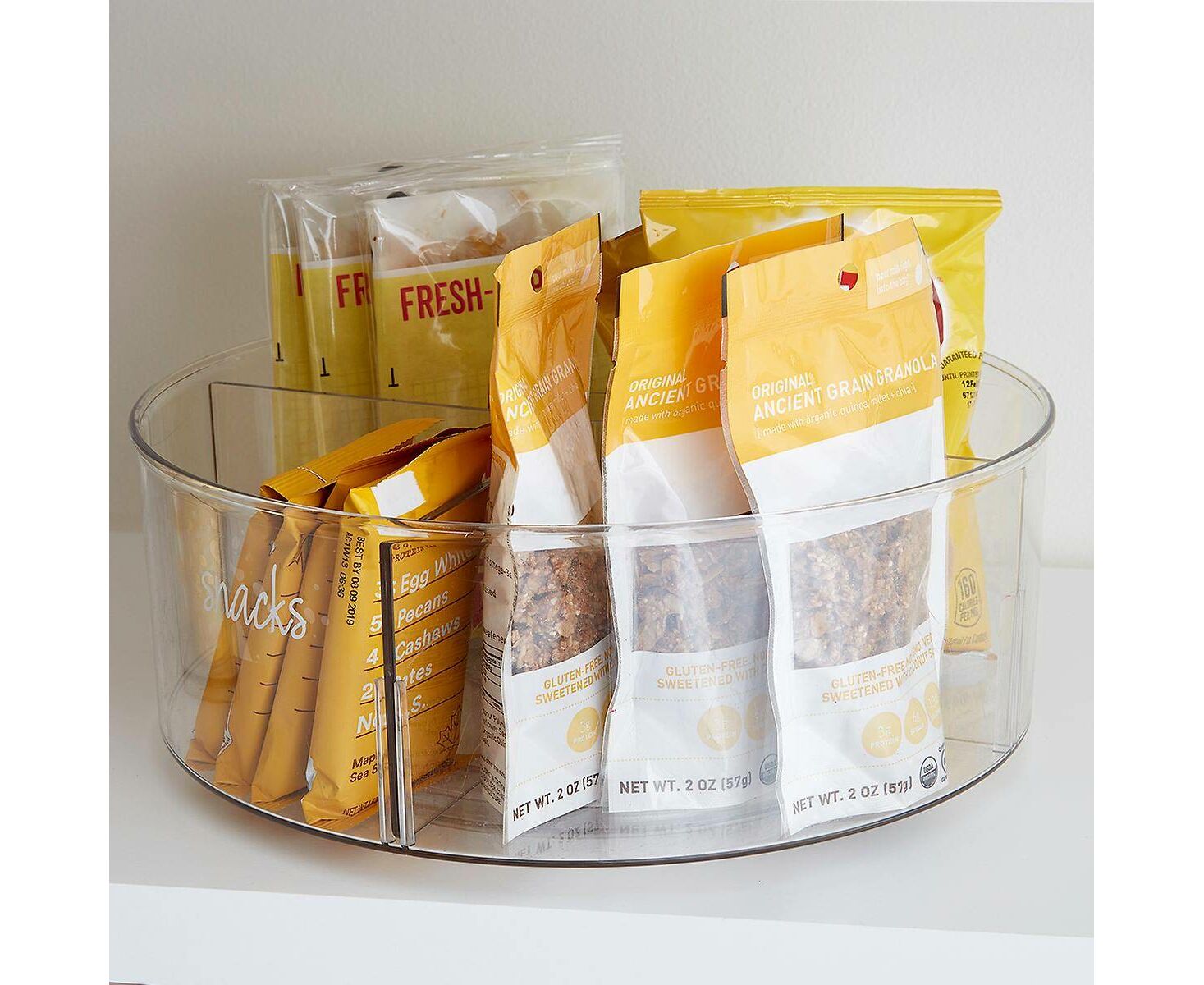 Esta Lazy Susan com divisórias e personalizável torna mais fácil classificar e armazenar de tudo, desde especiarias, pacotes de temperos e condimentos, peças para artesanato ou artigos de banho. Um recipiente removível mantém as garrafas e itens soltos na posição vertical para que todos os conteúdos sejam sempre fáceis de ver e pegar.