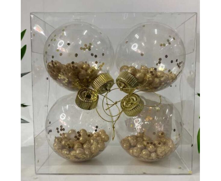 Bola Natalina com detalhes internos dourada de 10 cm, jogo de 4 peças perfeita para a decoração da sua árvore de natal.