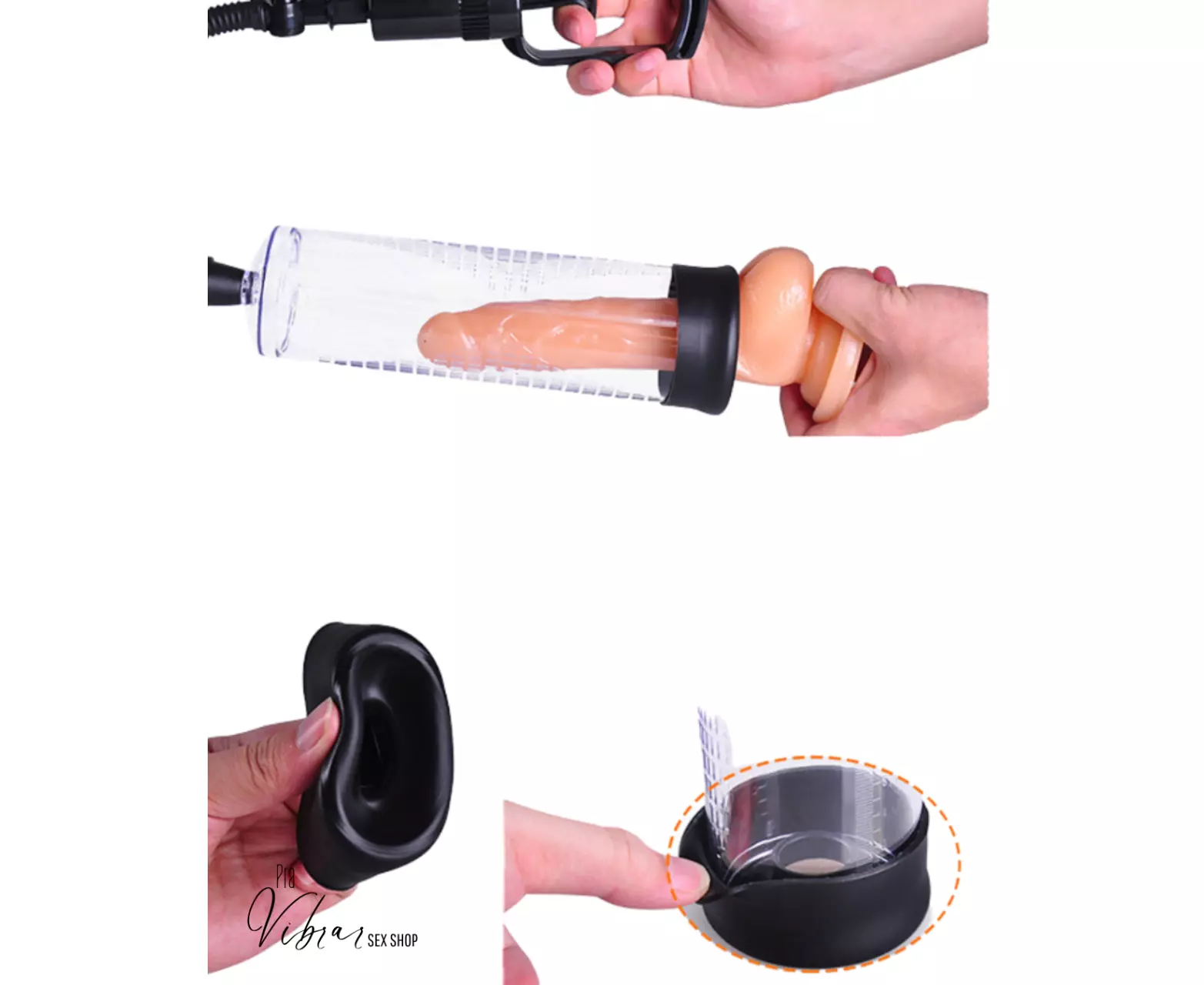 Bomba peniana de cilindro transparente com sucção a vácuo manual com 1 anel de vedação.