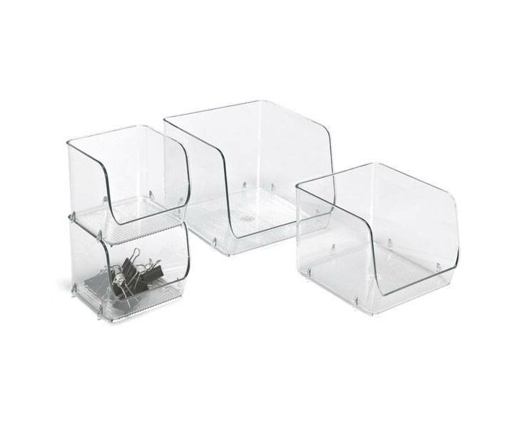 Quando procurar solução de organização que seja eficiente e funcional, saiba que as caixas iDesign Linus reúnem todos os requisitos. O plástico oferece visibilidade, facilitando a visualização do que está arrumado. Empilhe várias caixas para juntar clipes de papel, blocos de notas, produtos de higiene pessoal, cosméticos, etc..
