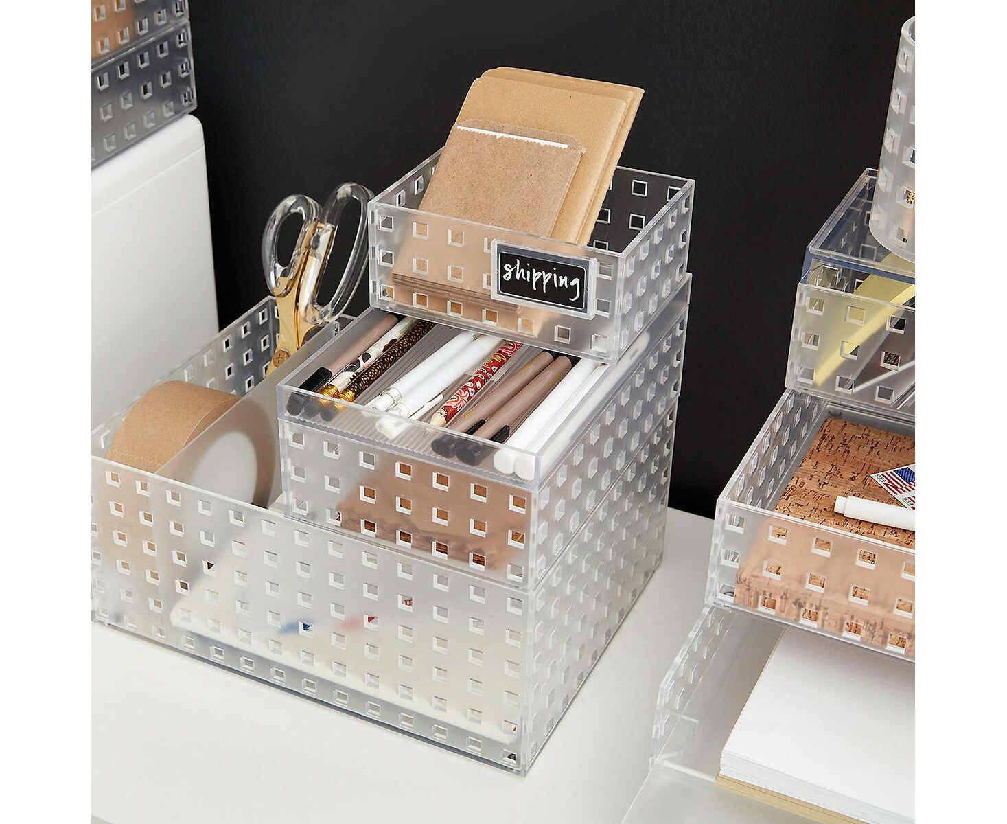 As caixas organizadoras Like-it Bricks são uma maneira fantástica de organizar tudo, desde material de escritório a pincéis de maquilhagem. Use as caixas como um guarda-tudo, utilizando sua característica modular para empilhar com facilidade, ou coloque divisórias dentro para dividir o espaço e dar ainda mais organização.