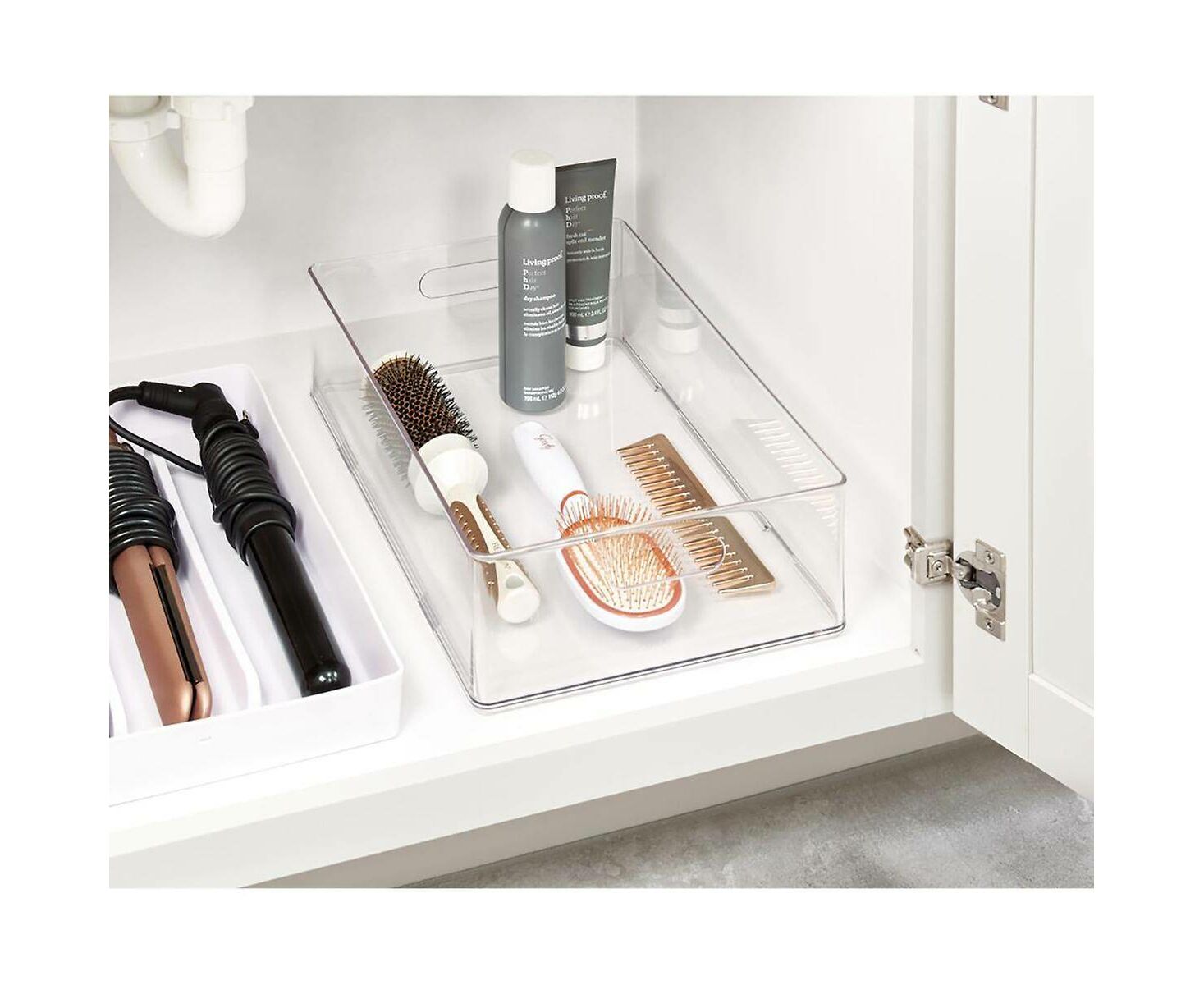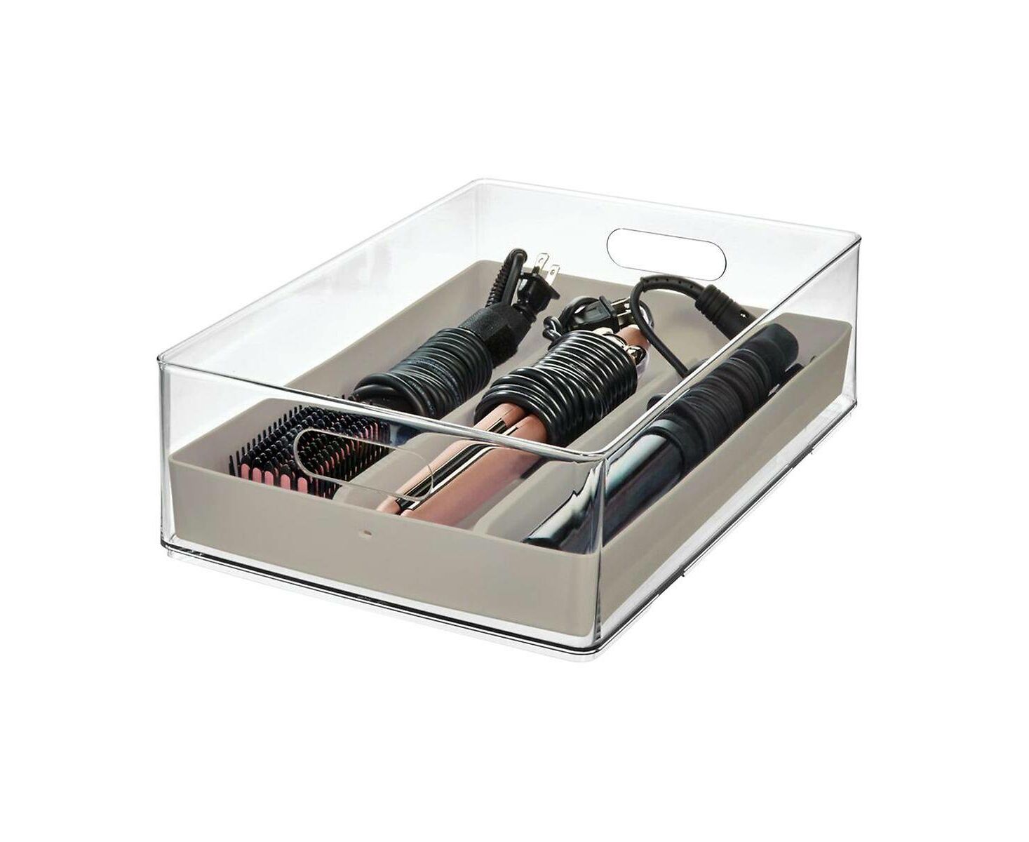 Esta caixa é projetada para conter uma variedade completa de ferramentas de cabelo - incluindo produtos e acessórios - tudo enquanto mantém tudo organizado e de fácil acesso. A construção em plástico cria uma aparência descomplicada e de grande visibilidade, e funciona mesmo em espaços pequenos.