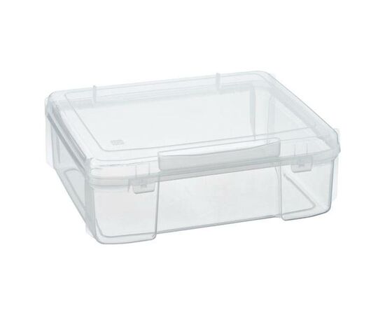 Caixa transparente para documentos é feita de polipropileno transparente para facilitar a identificação do conteúdo. Possui dobradiças resistentes para uma vida despreocupada.