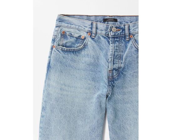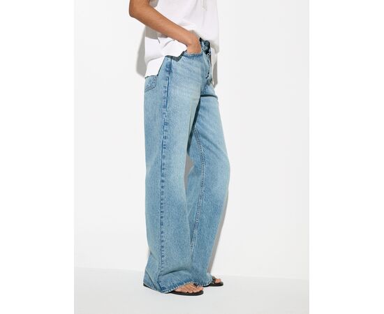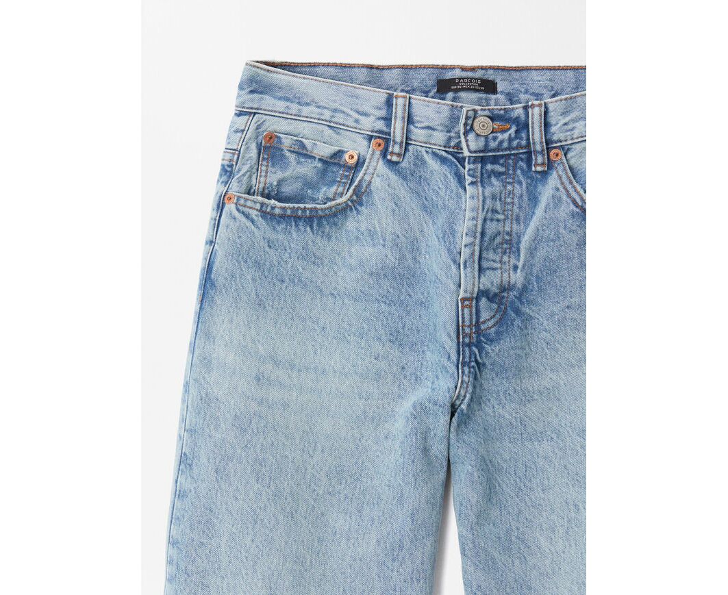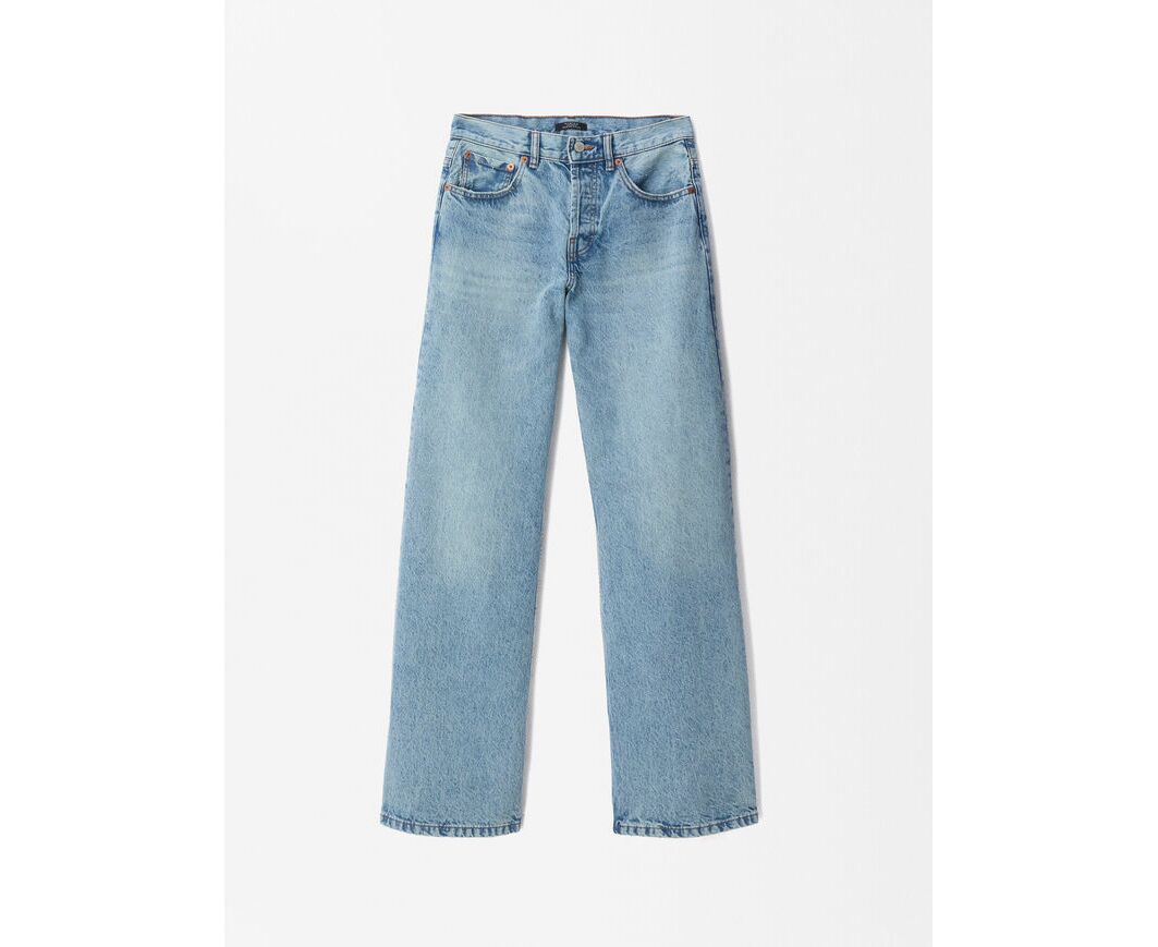 Calças de ganga em algodão retas. Cintura média. Efeito lavado. A modelo mede 1.77 m e veste o tamanho 38.