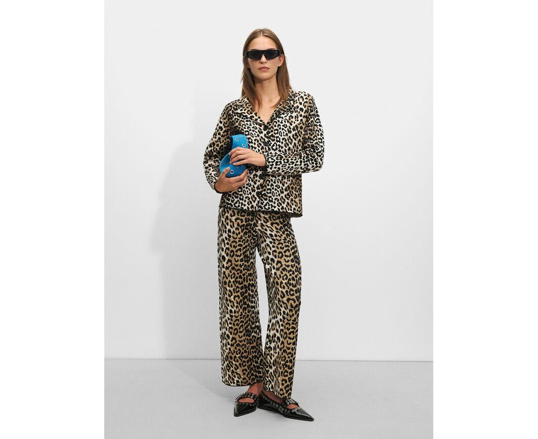Calças Jacquard Estampado Leopardo