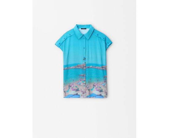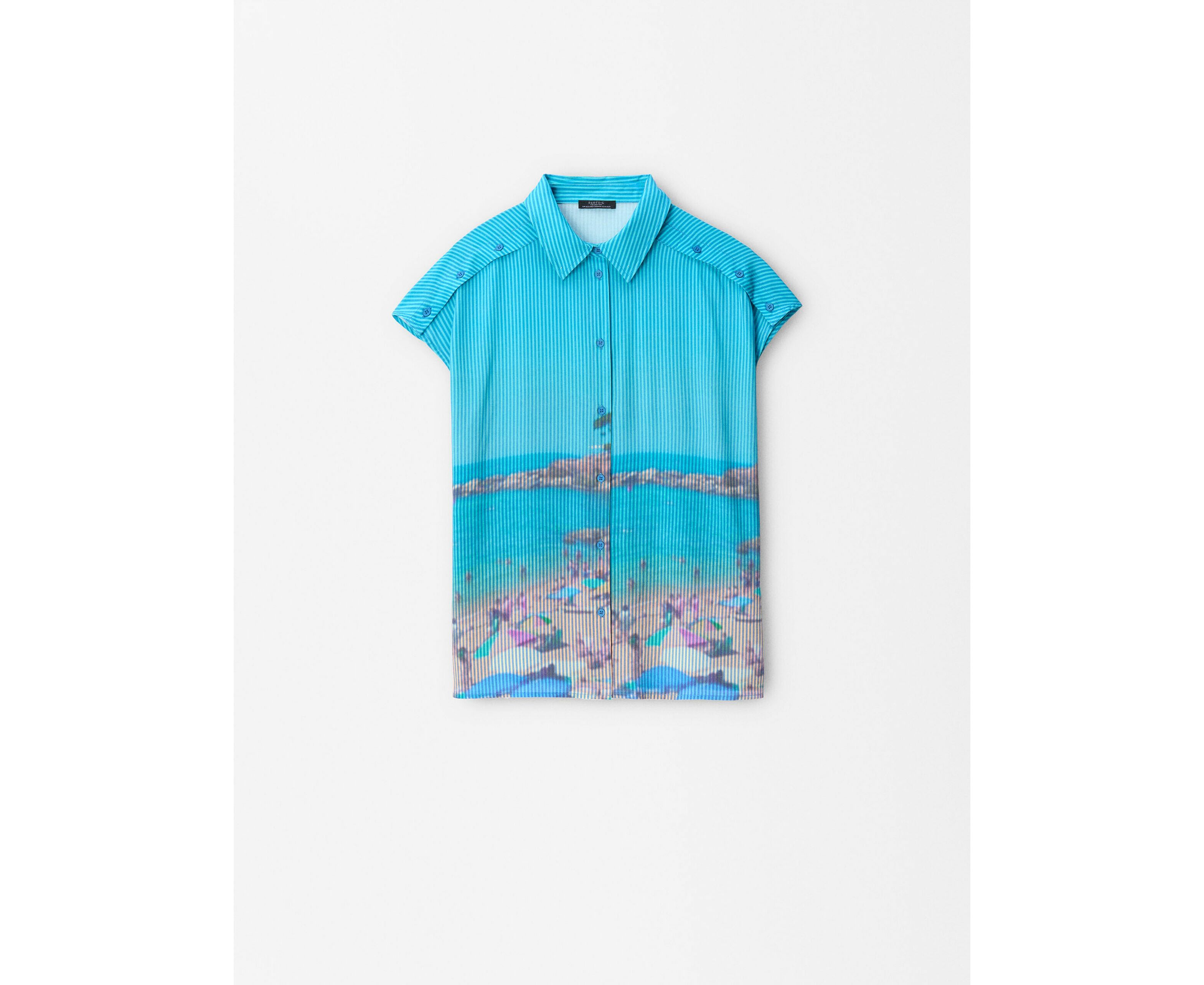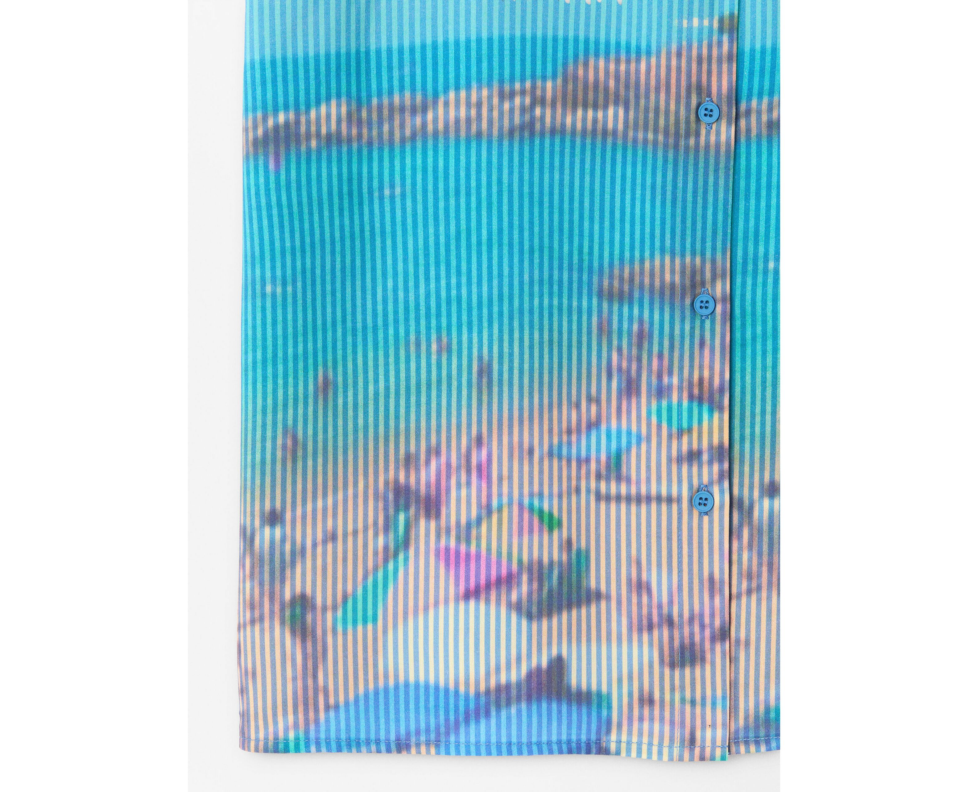 Camisa estampada manga curta às riscas. Confeccionada em viscose. A modelo mede 1.75 m e veste o tamanho XS-S.