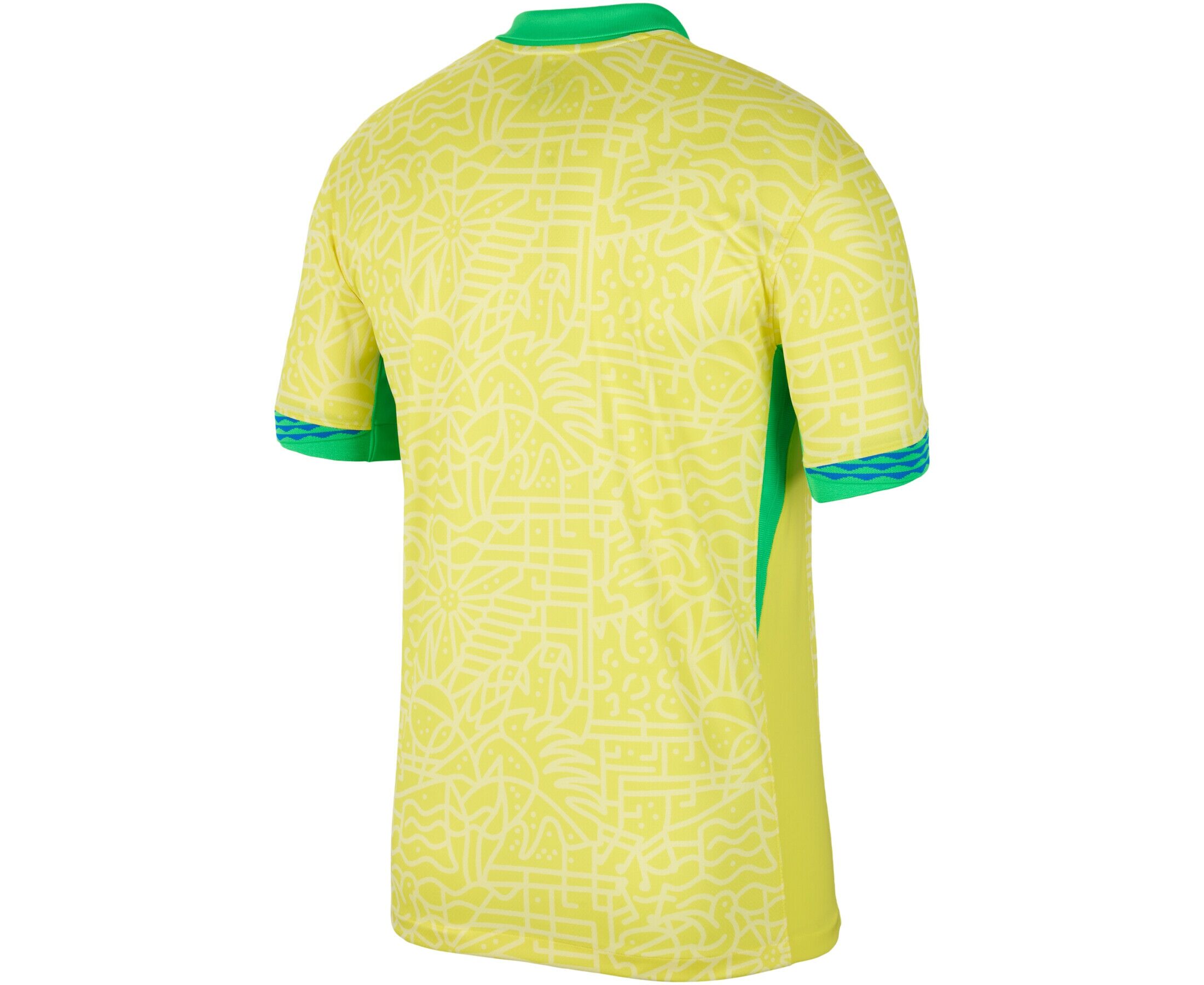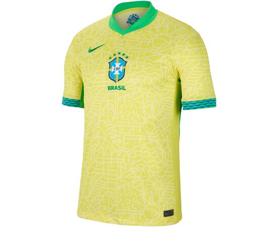 A camisola apresenta orgulhosamente as cores icónicas da bandeira brasileira, com amarelo vivo e verde vivo. O logótipo da equipa é colocado no centro do peito, enquanto o logótipo Nike é apresentado nas mangas e no colarinho.