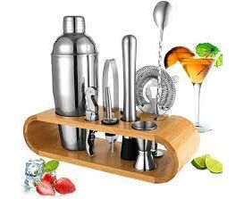 Conjunto de coqueteleira, kit de barman, kit de coquetel de 10 peças, conjunto de ferramentas de bar com suporte de bambu - Conjunto de coquetel de aço inoxidável, com este conjunto de coqueteleira tem o kit básico de barman, incluindo pinças de gelo, martelo de gelo, coador de gelo, abridor de vinho, copo de onça, colher de bar, copo de gramas de neve, bocas de vinho de aço inoxidável. Prateleira de madeira. Seja você um iniciante em coquetéis ou um barman profissional, esteja você em casa ou no trabalho, nosso shake de barman é uma ótima escolha para você.