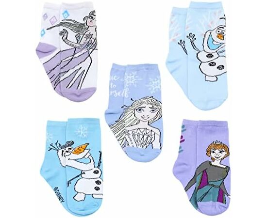 - Conjunto de 5 meias Frozen para meninas da Disney – Estes conjuntos de meias Frozen para crianças e meninas são um ótimo valor. Este lindo conjunto de meias possui um punho canelado, bainhas com costura dupla, gráficos sublimados em cores brilhantes, saltos e dedos reforçados.
