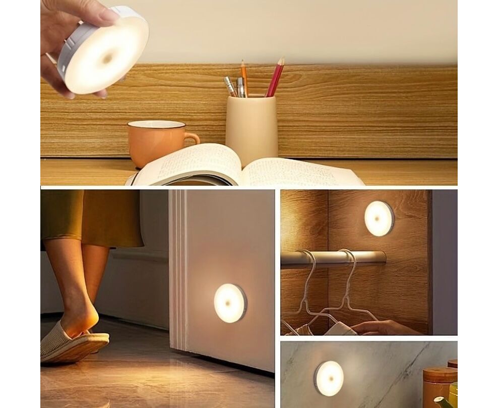 Bateria de longa duração com sensor de presença e três luzes ambiente.
