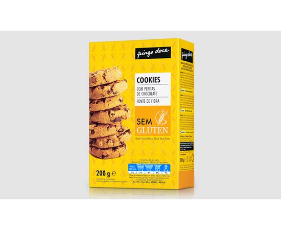 Pepitas de chocolate (25%) (açúcar, pasta de cacau, dextrose, manteiga de cacau, emulsionante: lecitina de soja), óleo de girassol alto oleico, farinha de milho, açúcar, farinha de arroz, amido de batata, amido de milho, xarope de glicose, concentrado de proteína de soja, levedantes (hidrogenocarbonato de amónio, hidrogenocarbonato de potássio), cacau em pó, sal, aroma.