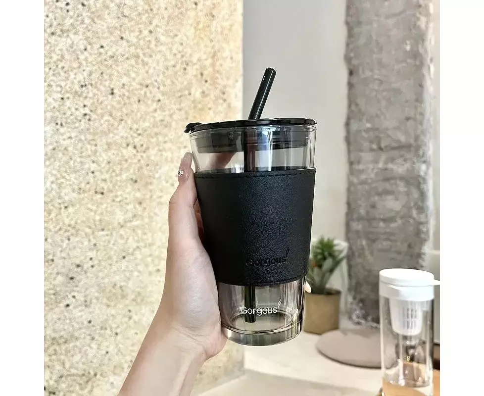 E além disso tudo ele vem com um canudo de vidro que deixa o copo muito mais charmoso e lindo.