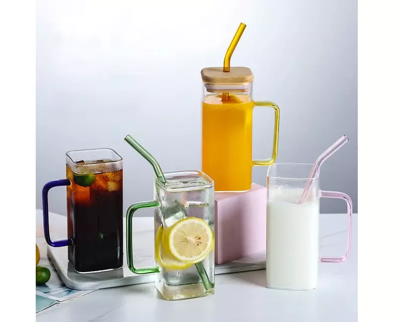 Copo de vidro resistente ao calor e resistência ao gelo, quadrado transparente, serve para café, suco e leite.