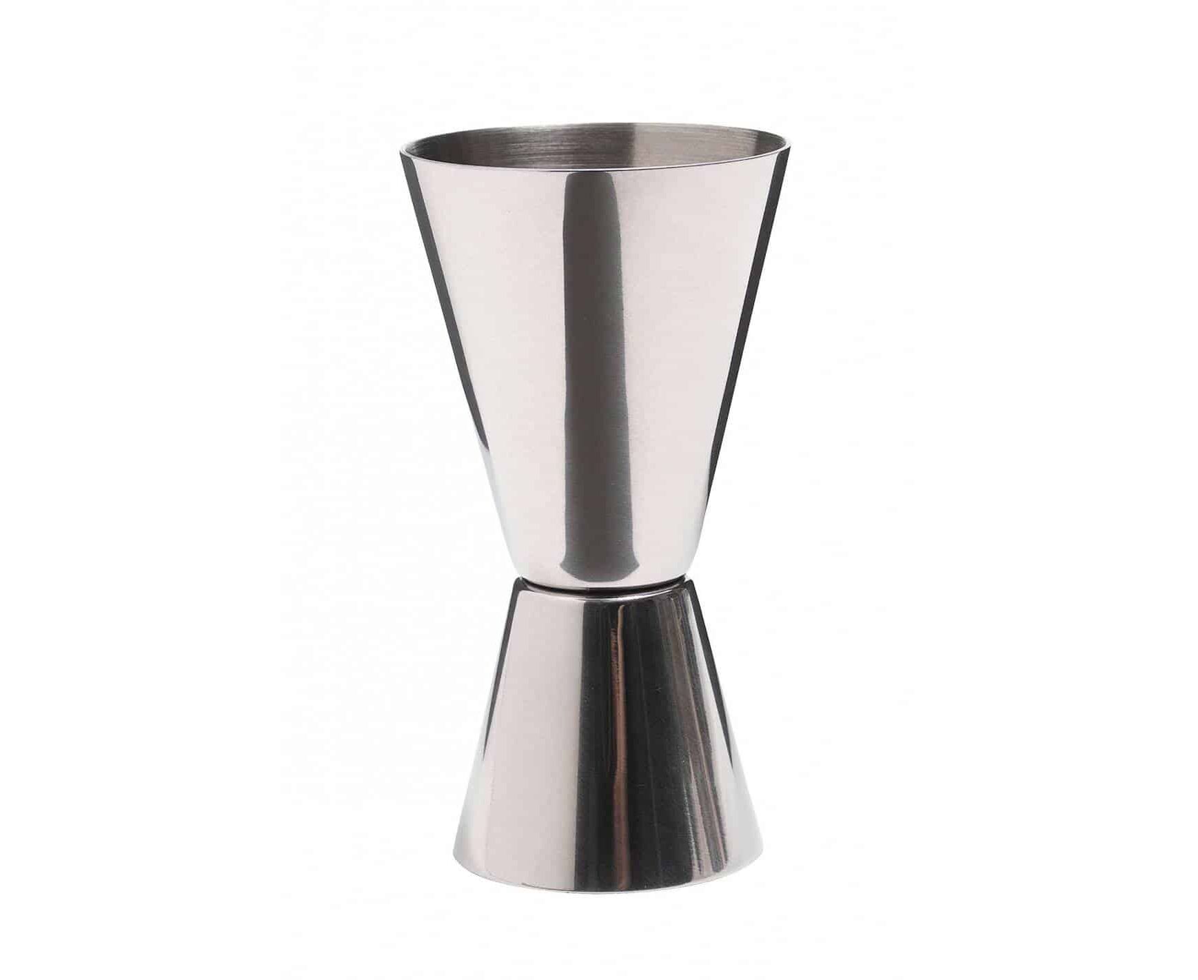 Copo duplo de medição,em aço inoxidável, ideal para a medição de bebidas espirituosas para cocktails e misturas.