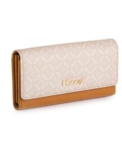 Carteira de PU Bege com Ferragens Banhadas a Ouro