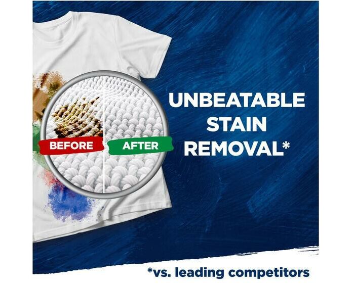- Remoção de manchas: Promete remoção imbatível de manchas logo na primeira lavagem.