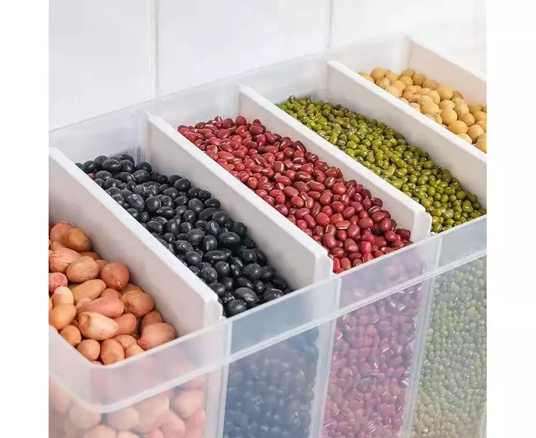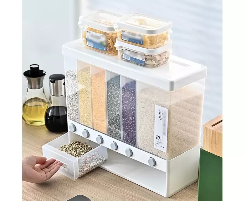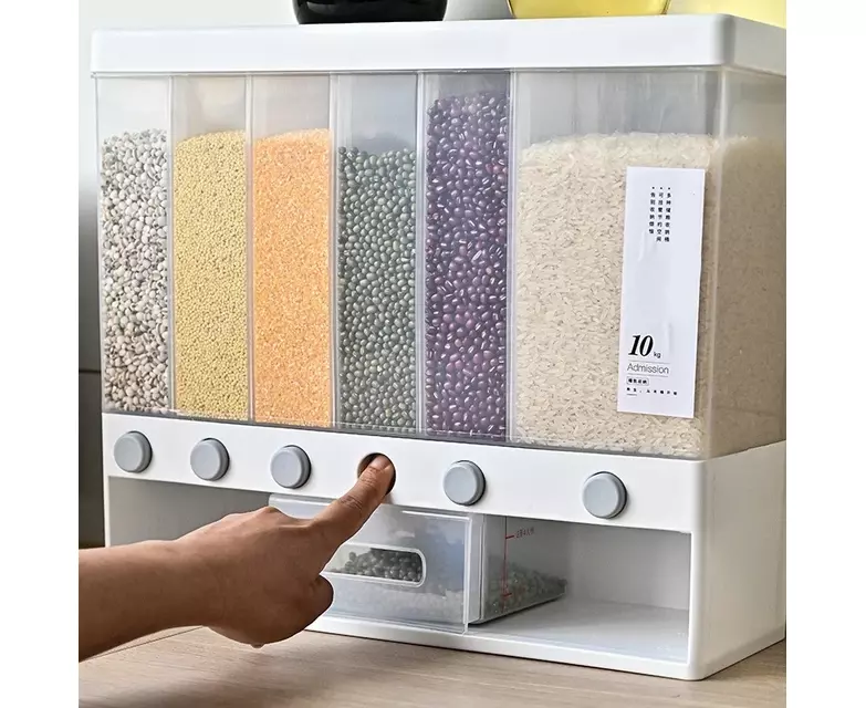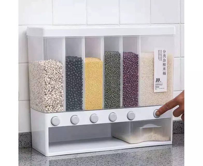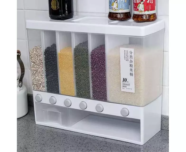 Armazenamento, cozinha, dispensador de cereais selado, umidade prova cremalheira, comida seca, divisor e balde.