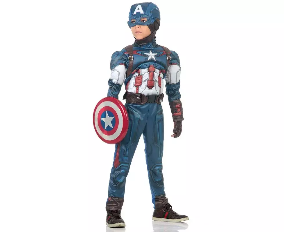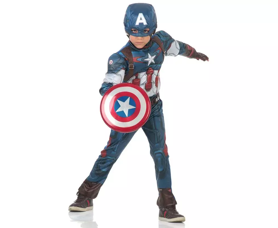 Transforme seu filho em um super soldado com esta fantasia infantil dos Vingadores, o Capitão América! Feita de tecido macio e brilhante, o macacão apresenta músculos moldados nos braços e no tronco. Para detalhes realistas, a icônica armadura vermelha, branca e azul do Capitão América, ainda recebe detalhes de camurça fake e fechos de metal. Acompanha máscara estampada com detalhes, além de luvas e cinto com bolsos, para seu pequeno ser o verdadeiro Capitão América.