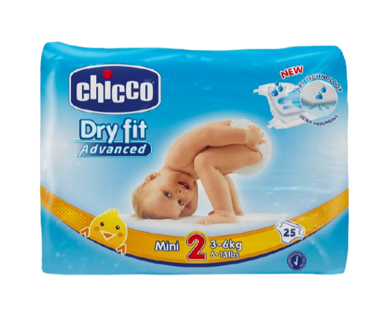 Chicco DryFit Mini Fraldas ajudam manter a pele do bebé seca e saudável.