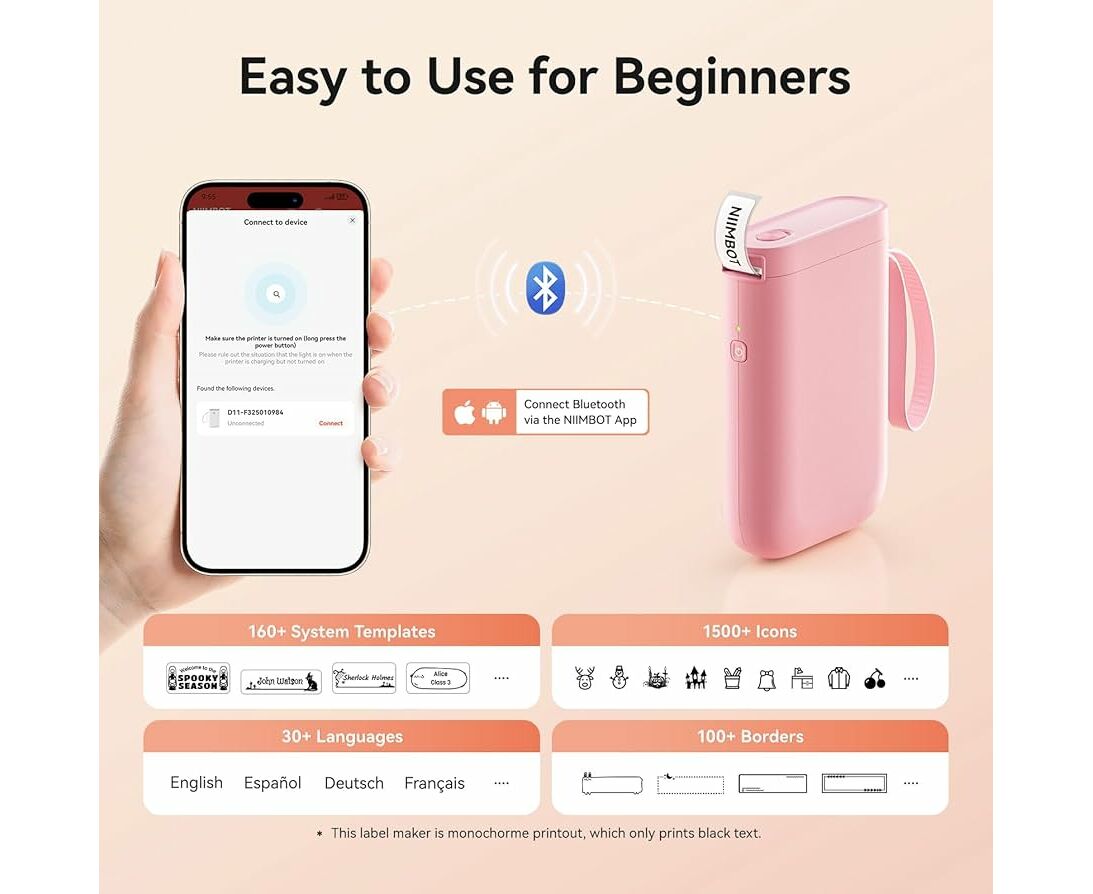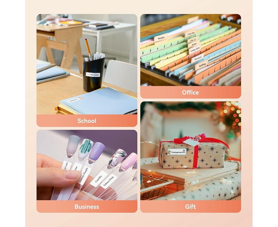 - Impressão de etiquetas do seu jeito: A impressora de etiquetas leve e portátil usa tecnologia sem fio para criar e imprimir etiquetas pré-desenhadas ou personalizadas de até 15 mm de largura a partir do seu celular. (OBSERVAÇÃO: não é compatível com o Pad e o PC.