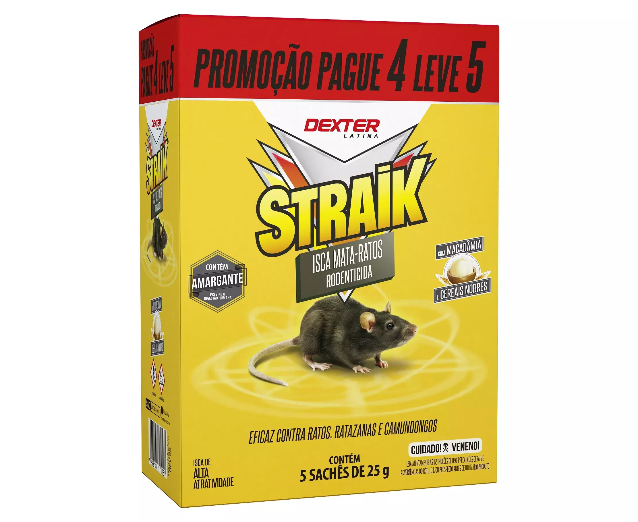 traik isca elimina ratos - Quantidade: 1 Caixa com 5 sachês de 25g cada - Indicado para o controle de ratos, camundongos e ratazanas - Possui alta atratividade - Contém macadâmia e cereais nobres - Desestimula a ingestão, pois contém amargante - Mais seguro: Evita o contato manual. Não precisa abrir o sachê, basta deixar onde se observa a presença de roedores. - Pode ser utilizado em residências, escolas, fábricas, depósitos, sítios e hospitais. envio rápido.
