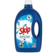 Skip - Active Clean   remove mais nódoas difíceis, mesmo em ciclos curtos e agua fria. Dissolve-se facilmente na lavagem. Indicado para roupa de fibra e cores delicadas.