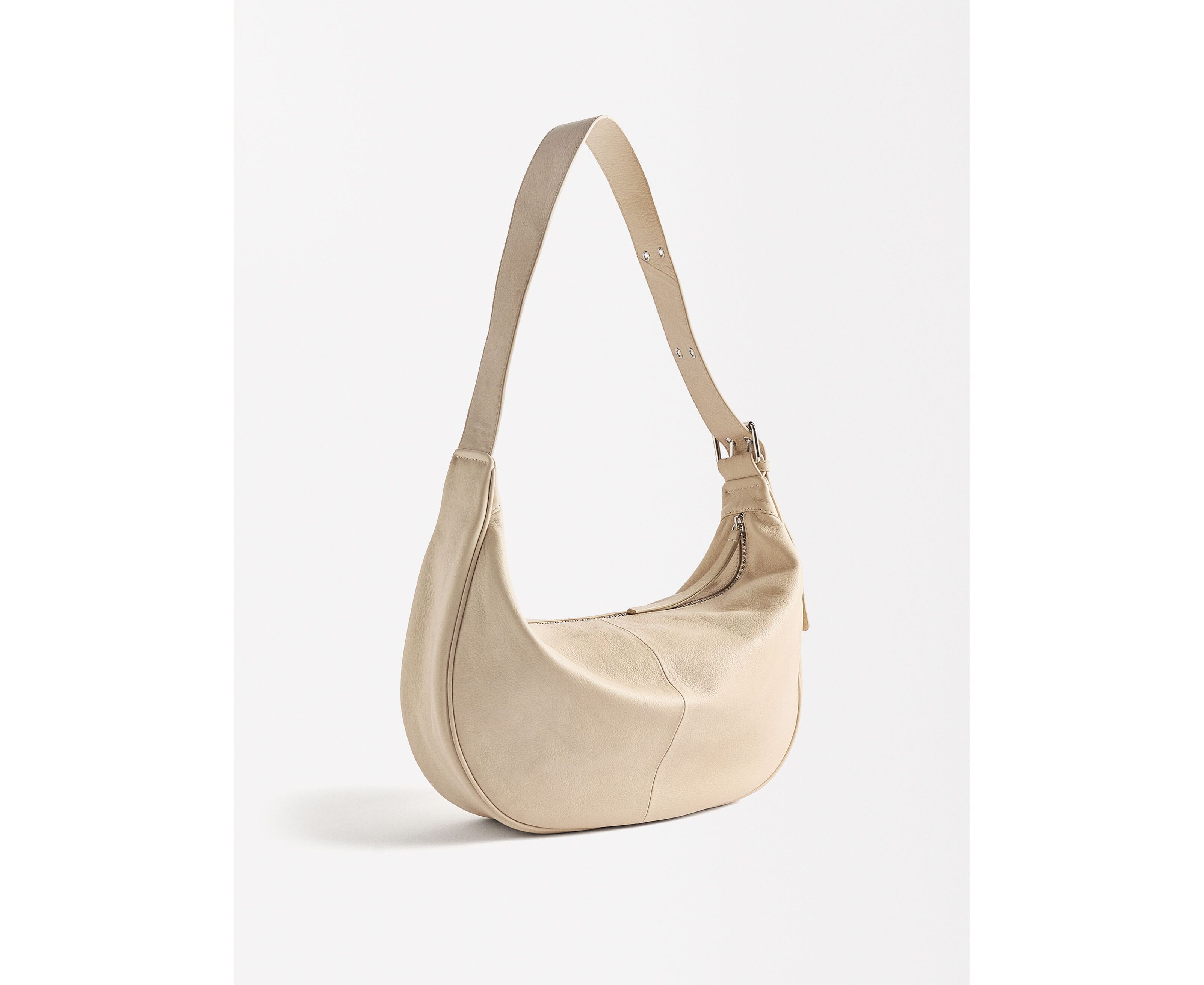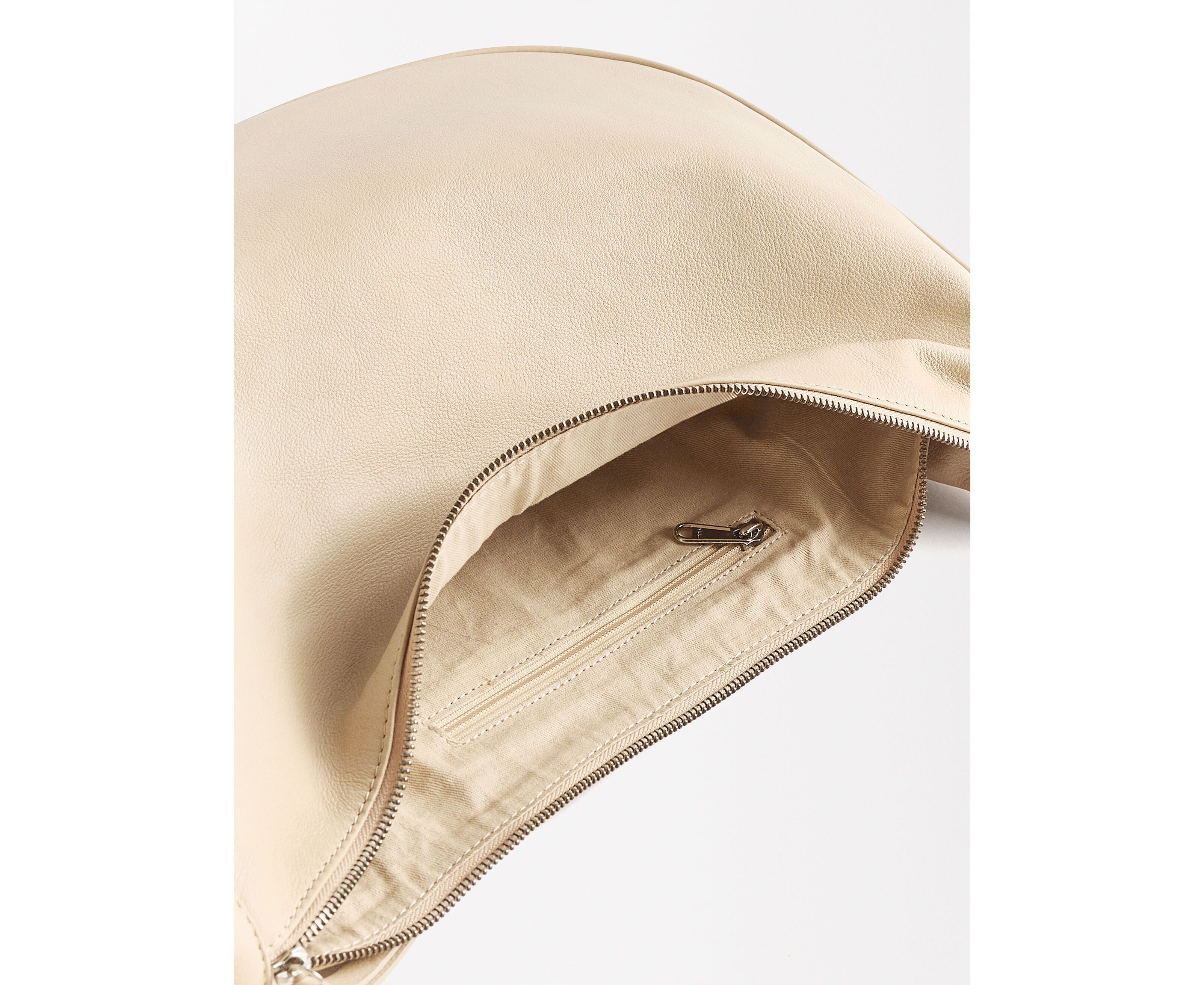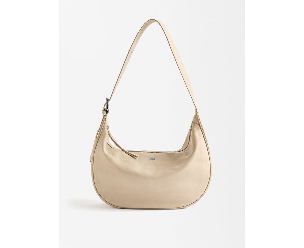 Mala de ombro em pele de tamanho grande, personalizável. Forro e bolso interior. Fecho de correr. Alça ajustável.