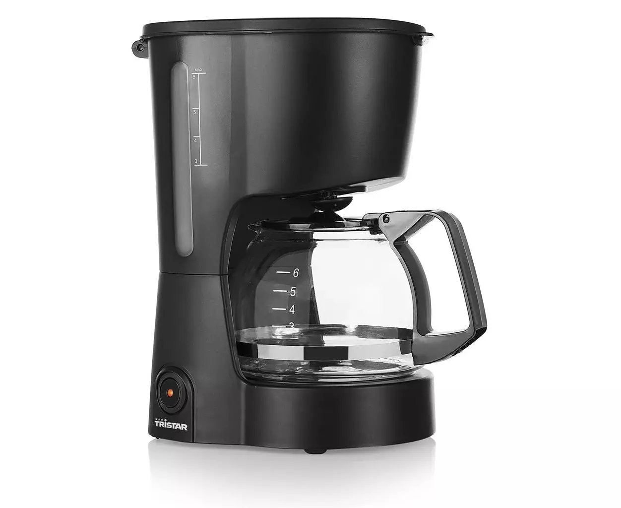Potência 600W, cafeteira de filtro, capacidade do depósito de água 0,6L, capacidade em chávenas 6, reservatório para café moído, cor preto, desligamento automático após 40min, desligamento automático programável, interruptor ligar/ desligar.