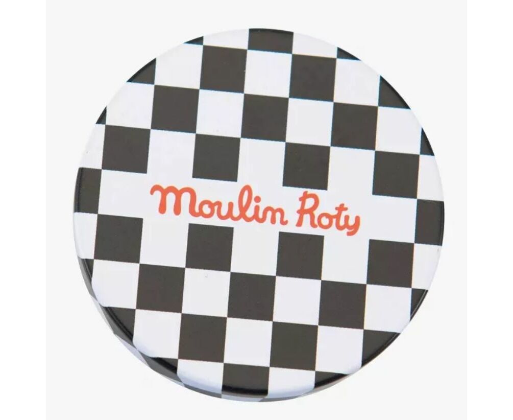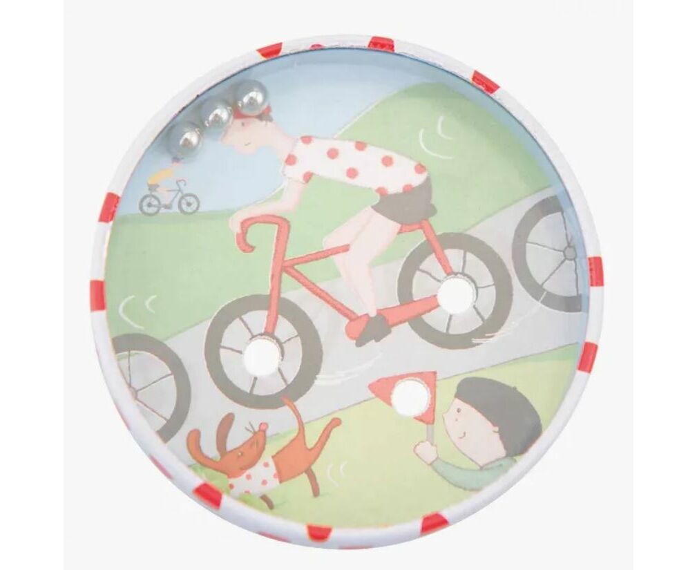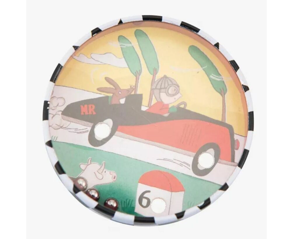 Mini jogo de paciência na forma de uma pequena caixa redonda.