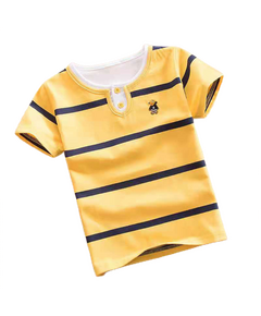 T-Shirt Polo Manga Longa às Riscas- Amarelo e Preto