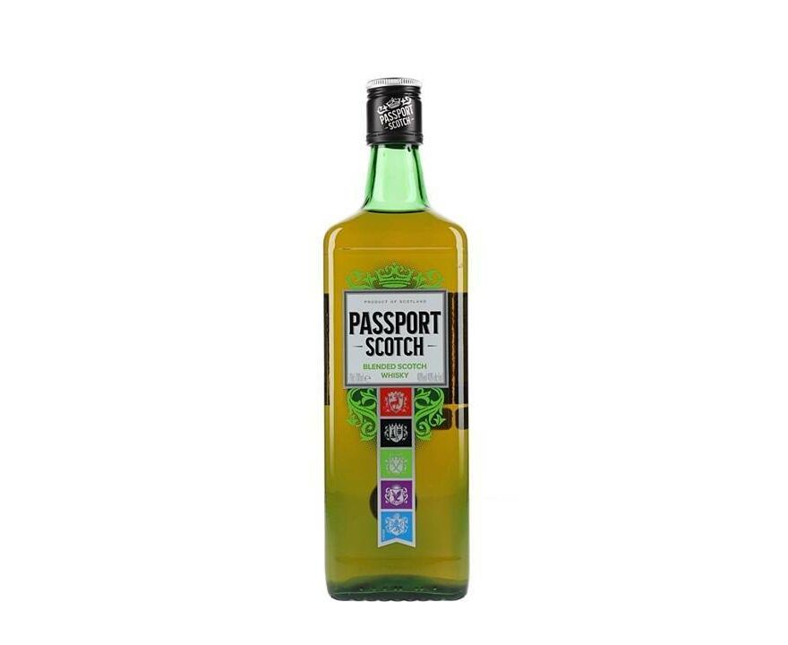 Uma garrafa do sempre popular uísque escocês misturado Passport. Com um final frutado e cremoso, é, segundo seu site em 2013, o segundo whisky mais vendido no Brasil.