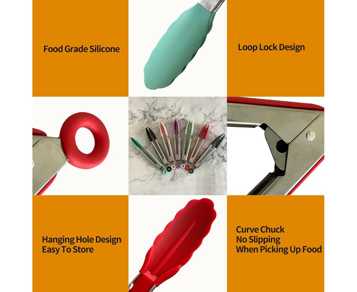 Pinças de Aço Inoxidável para Cozinha, em forma de concha, 100% silicone de grau alimentício, resistente ao calor até 250 ° C, 482 ° f,