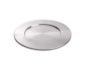Prato marcador em inox. É um elemento essencial para dar classe à sua mesa nas ocasiões especiais.
