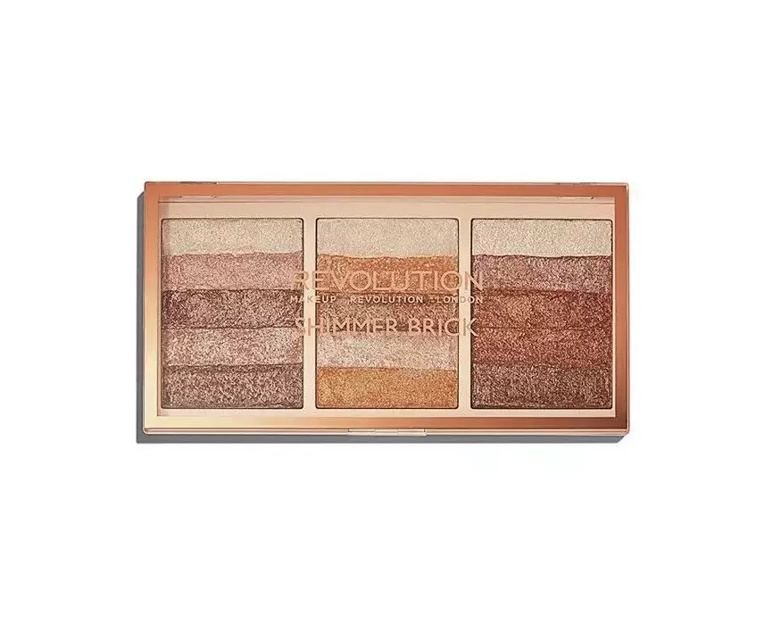 Paleta do Shimmer Revolution Shimmer Brick : Revolution paleta Shimmer Brick Revolution é uma paleta que combina tons de bronze claro e escuro a branco, dourado e rosa. Eles podem ser usados sozinhos ou em combinação para um brilho deslumbrante.