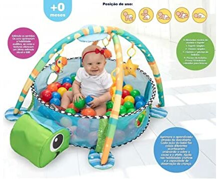 Tapete de Atividade Com Piscina de Bolinha para Bebês - Tartaruga.