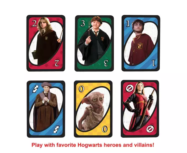 É o jogo de cartas divertido e rápido que adoras, agora com personagens icónicas do mundo de Harry Potter! Junta-te ao Harry, à Hermione, ao Ron, ao Professor Dumbledore e a muitas mais das tuas personagens favoritas de Hogwarts para uma noite de UNO.