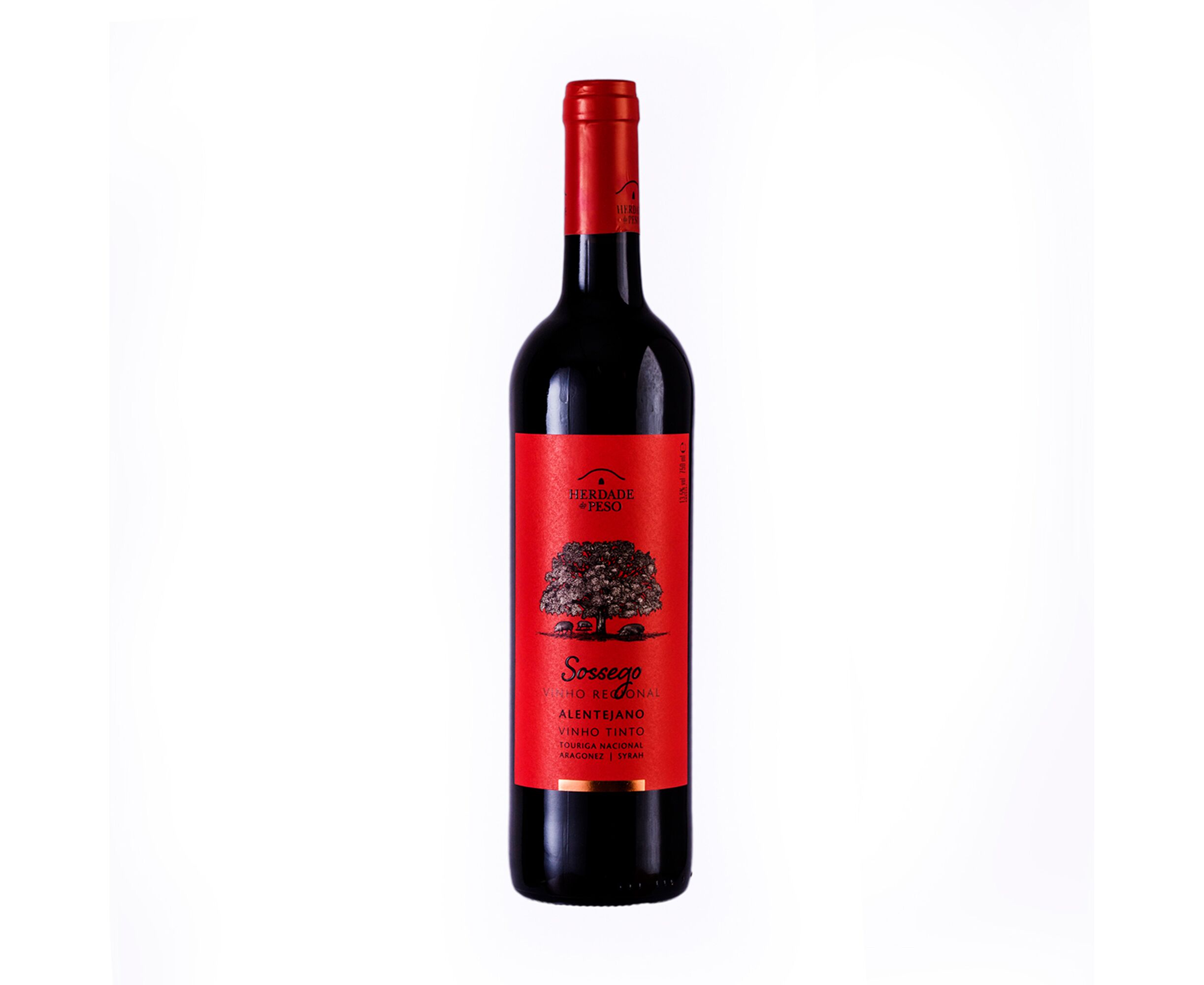 O Sossego tinto tem base na Aragonez, uva-chave de toda a Península Ibérica; combinada a Touriga Nacional, refinada e perfumada; e a Syrah, uva que ganha grande destaque no Alentejo.