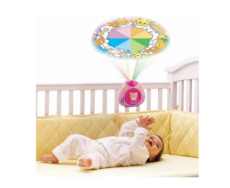 Sonhe alto com o projetor Lullaby Bear Crib. Luz de berço calmante com design de ursinho de pelúcia fofo projeta padrões de luz relaxantes no teto.